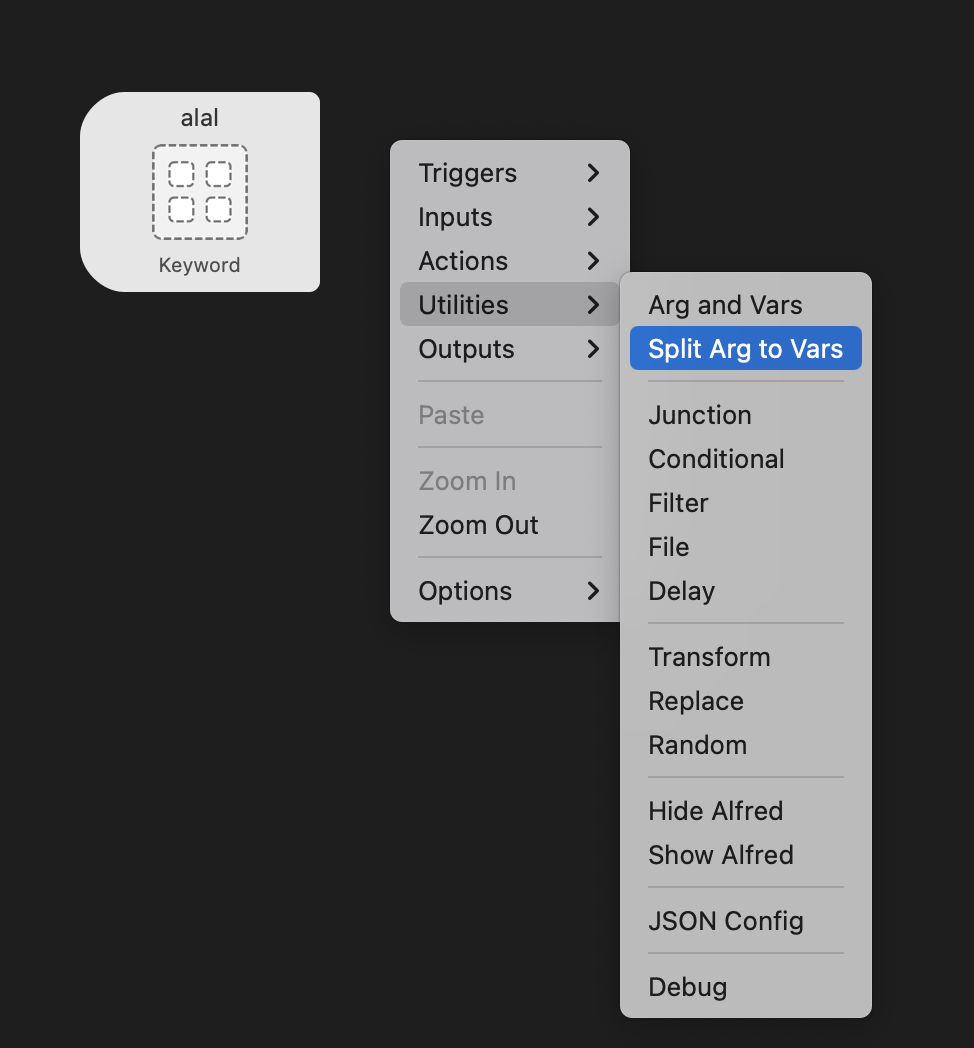 You can split the argument with "Split Arg to Vars" utility of Alfred.