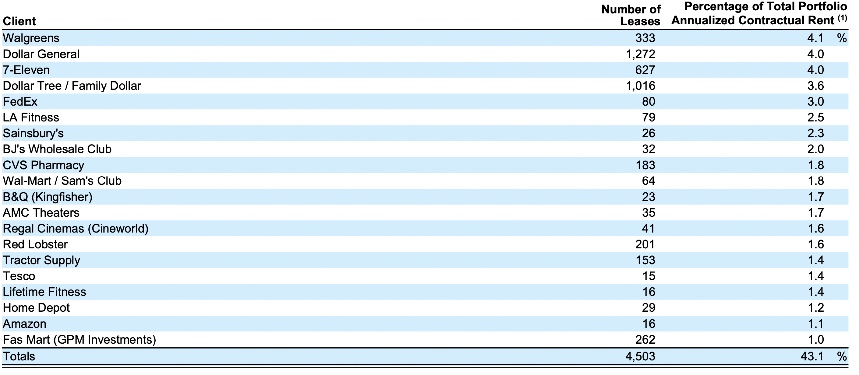 참고로 아래 이미지는 리얼티 인컴의 상위 20개 고객 명단이다.