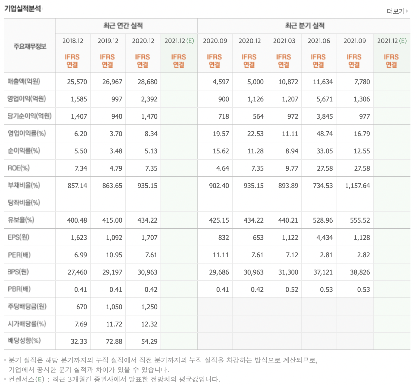 그런데 그 옆 2022.12(E)에 466원이라고 되어 있다. 그리고 제일 아래 줄에 "컨센서스(E) : 최근 3개월간 증권사에서 발표한 전망치의 평균값입니다"라는 문구가 있다.