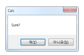 MsgBox, 4, Calc, Sure? ; "Calc"라는 제목, "Sure?"라는 내용의 메시지 박스를 띄우고