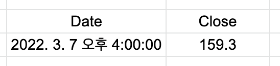 우리가 필요한 값은 위의 테이블 중 2행 2열에 있는 종가이다. 표에서 원하는 값을 추출하고 싶을 때는 index 함수를 써야 한다.