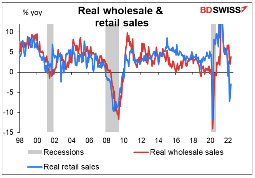 소매 판매량은 하락 추세로 전환됐습니다. 첫 번째 경기침체의 징후입니다. 하지만 도매는 3.8% 상승했습니다.