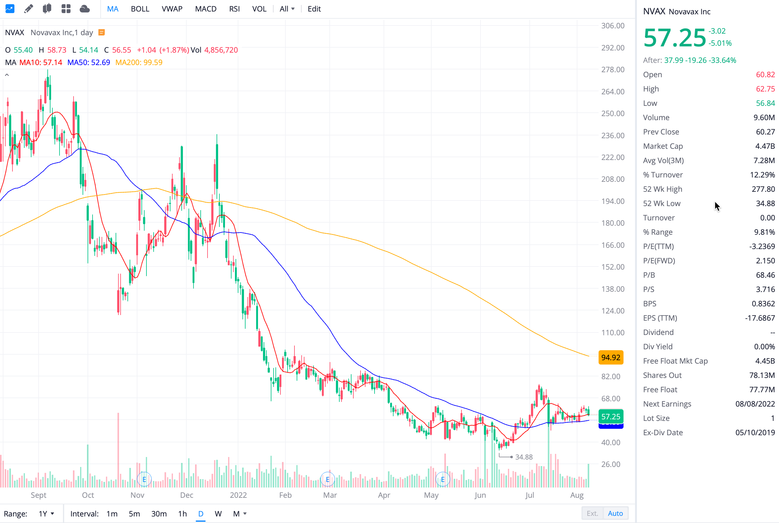 노바백스의 실적이 실망스러웠고 투자자들은 이에 대해 크게 실망하며 애프터마켓에서 주가가 32%나 폭락했습니다.