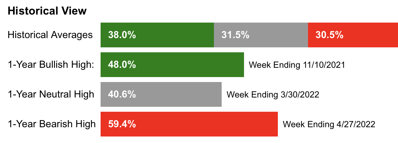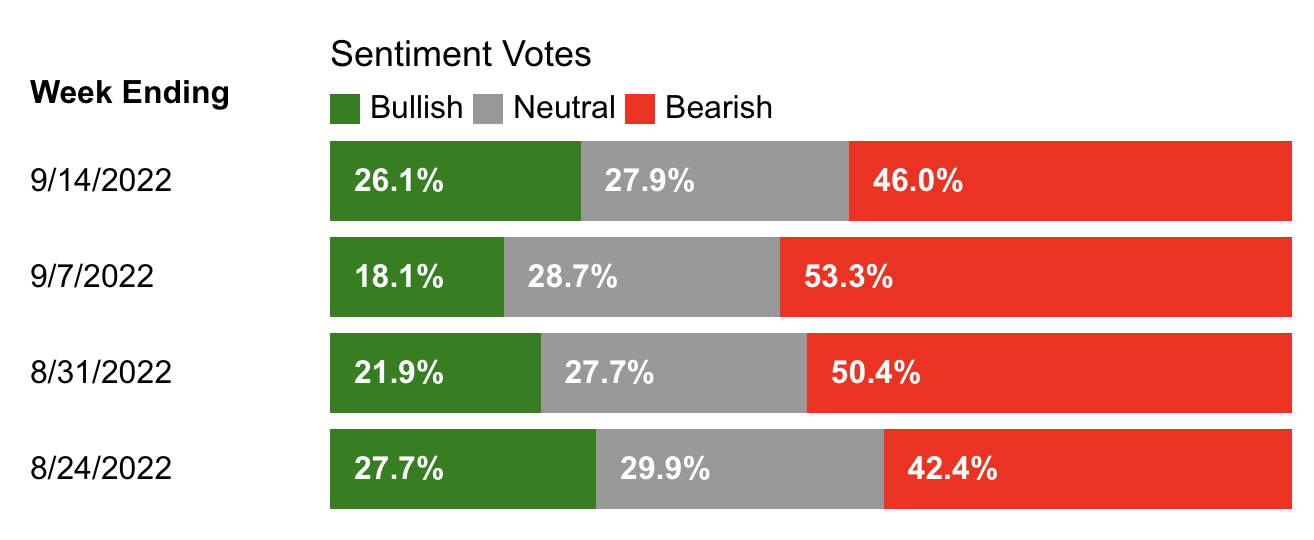 위의 이미지는 AAII의 역사적 평균입니다. Bullish가 평균적으로 38% 정도는 되는데, 현시점의 Bullish, 다시 말해 시장을 낙관적으로 보는 투자자의 비율이 26.1%밖에 되지 않는다는 것은 현재 투자심리가 현저히 위축되어있다는 의미일 것입니다.