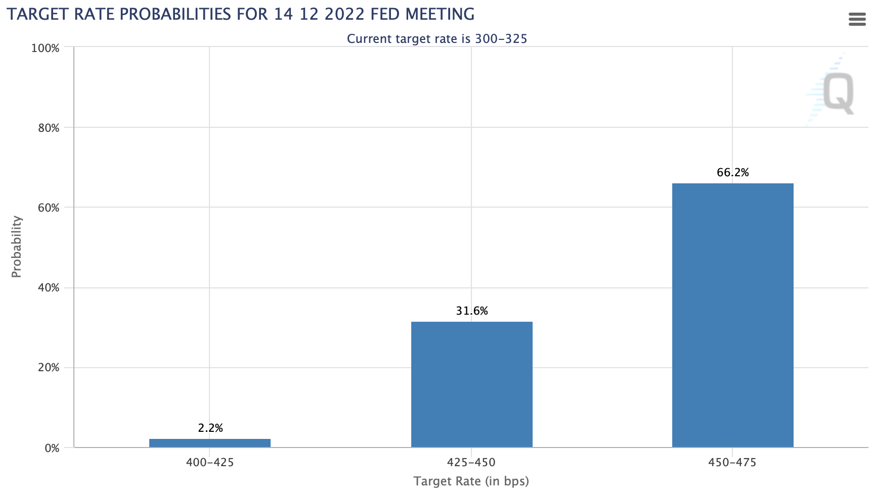위의 두 이미지처럼 현재 11월에 75bp 금리 인상이 있을 확률을 92%, 12월에 한 차례 더 75bp 금리 인상이 있을 확률을 66%로 보고 있습니다. 그러면 도합 1.5%의 금리 인상이 있는 것이고 현재 3.00~3.25%인 연방 기금 금리가 4.50~4.75%가 됩니다.