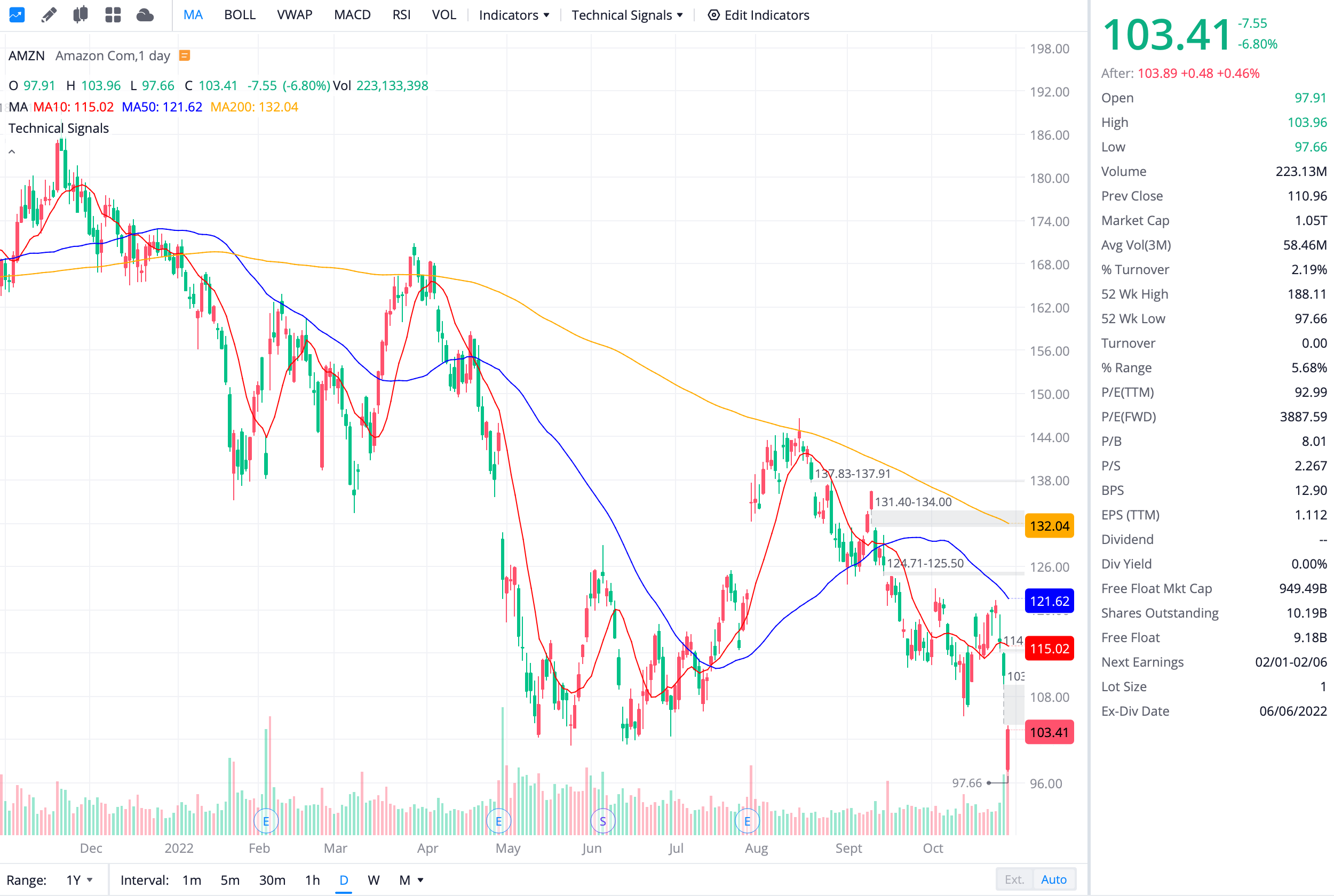 아마존의 3쿼터 실적이 부진한 것이 확인되자 장초에는 11%까지 주가가 폭락하는 모습을 보였습니다. 아마존은 매출 예상치를 넘어서지 못했으며, 홀리데이 시즌의 판매 실적도 부진할 것으로 예상되고 있습니다.
