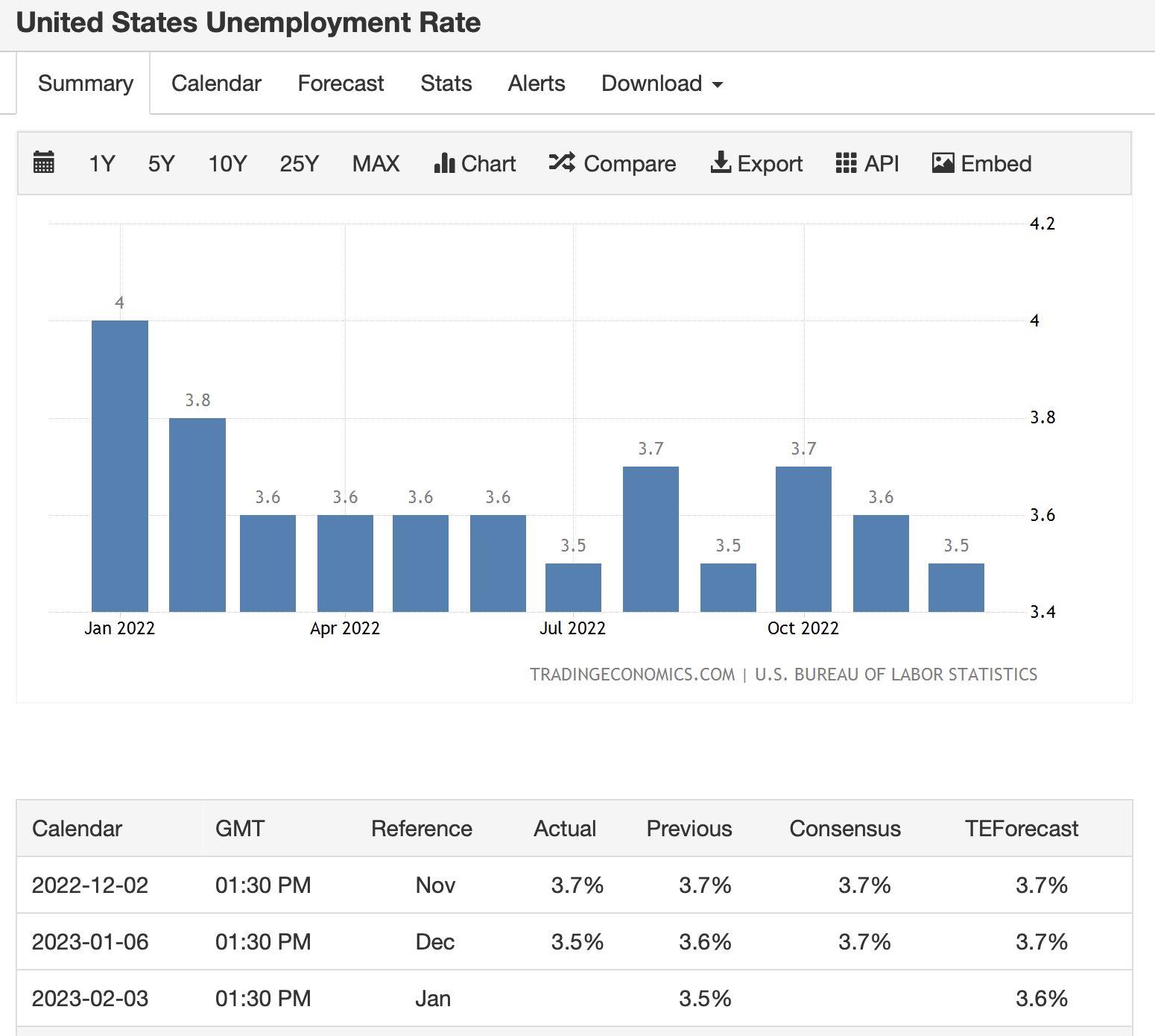 물가는 잡히고 있지만, 여전히 미국의 실업률은 낮습니다. 미국의 실업률은 3.5%로 역대 최저 수준입니다.